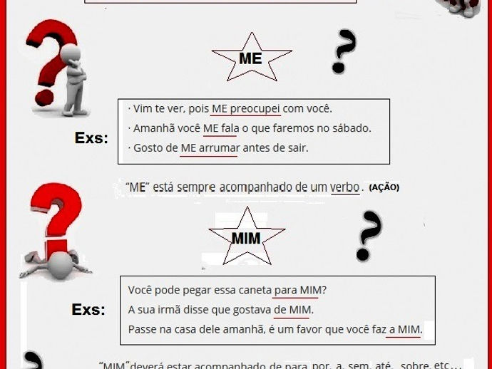 EXERCÍCIO 1. Complete as frases com me ou mim: a) Coloque uma música para ____. b) Diga - ___, como você está? c) A vida não está fácil...